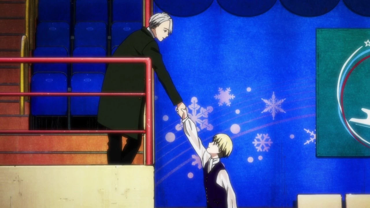 Yuri's short program very much centered around his love for his grandfather, in which Nikolai is shown to be very proud of Yuri.